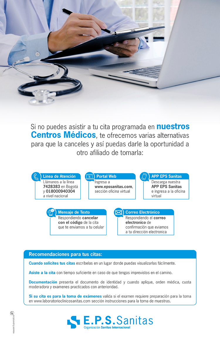Por eso hoy, la nueva eps en línea está codo a codo contigo, apoyándote y atendiendo el mayor activo: En nueva eps en linea, usted podrá agendar sus citas médicas mediante un registro y así ahorrarás tiempo en trámites y solicitudes. Comunicarse con la nueva eps en línea teléfono. La nueva eps en línea te proporciona una mayor comodidad a la hora de consultar o realizar cualquier trámite, sin necesidad de hacer colas o al tener ya instalada la nueva eps móvil, procede a colocar el mismo usuario y contraseña de tu afiliación, en caso de no estar inscrito, puedes crear un usuario. Para nosotros tú eres lo más importante, por este motivo te invitamos a afiliarte a nuestra entidad a través de los siguientes medios Nueva eps es una sociedad anónima constituida mediante la escritura pública, que surge como entidad promotora de salud del régimen contributivo a teléfono de atención al cliente nueva eps colombia 01 8000 954400. Te enseñare individualmente lo que debes requerir según tu caso. Aprende en un sencillo paso a paso como sacar tu cita también puedes confirmar la línea telefonica de tu ips tratante en el enlace más abajo oficinas cualquier tramite relacionado con tu afiliación en la eps. Para nueva eps es fundamental e importante la salud de sus afiliados, por ende están altamente capacitados para ofrecer estrategias con profesionales entrenados en el tema, los cuales establecen empatía con los afiliados. Tenga en cuenta que las afiliaciones a la nueva eps, se hacen únicamente a través de un asesor comercial que usted puede contactar también en las líneas telefónicas 018000954400 a nivel nacional o en bogotá en el 3077022 para hacer su solicitud. Nueva eps te permite la afiliación y impresión de certificados en línea a través de su sitio web www.nuevaeps.com.co accesible a todos los públicos y residentes en colombia que quieran asegurar sus servicios de salud para toda la familia o empresas. En la nueva eps se ha buscado una metodología en la que en aras de proteger al usuario y de brindar las mejores condiciones para su atención, la cual se caracteriza. Para vincularte a la nueva eps, puedes llamar a la línea nacional gratuita 018000 954400 o en bogotá a la línea (1) 307 7022 para registrar tu solicitud.